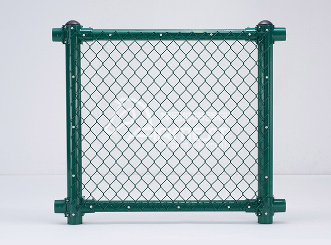 3、PE包塑围网:内径采用优质低碳镀锌铁丝,包塑层使用高密度进口PE原粒,并添加抗UV原料合成材料进行包裹,耐腐蚀能力强,颜色选用进口色粉,适合全天候环境使用。